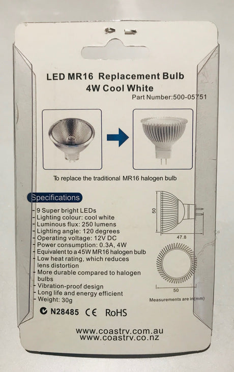 Low stock (6 units)Regular price $19.75 AUDUnit price /UnavailableLED MR16 Replacement Bulb (Cool White) 4W
