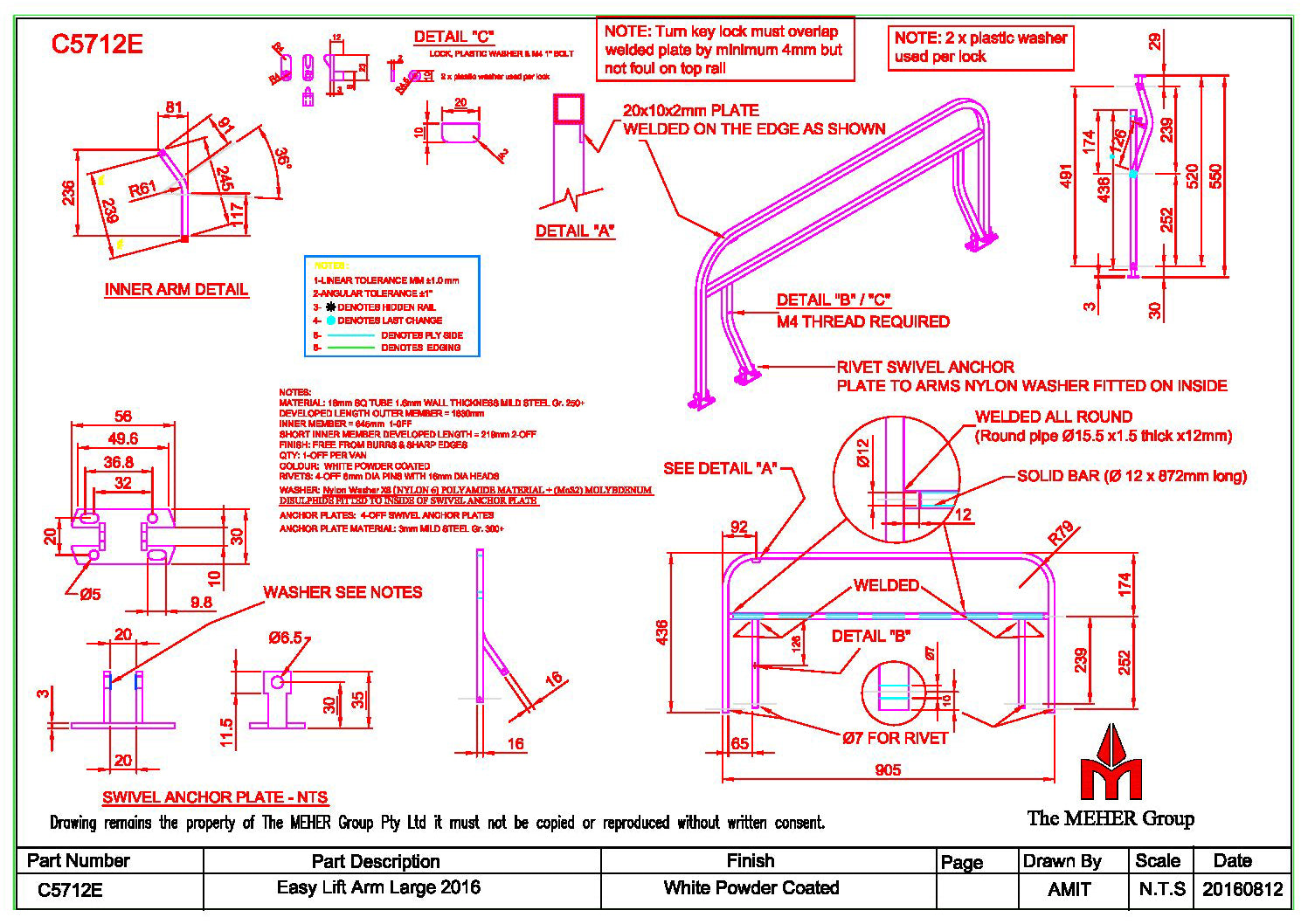 Jayco canopy easy lift arms (pair), made from 16mm square tube steel with a wall thickness of 1.2mm, white powder coat finish.