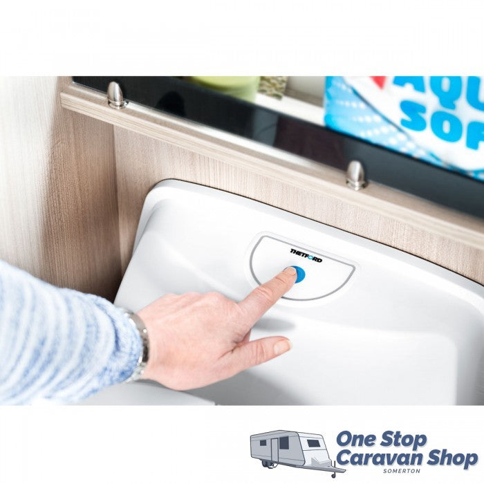 The Thetford C223 CS is a rear access cassette toilet with an electric flush which is plumbed to your caravan's water tanks. It has a 18L removable waste cassette which includes built-in wheels and pull handle for effortless transportation to the dump point when required.