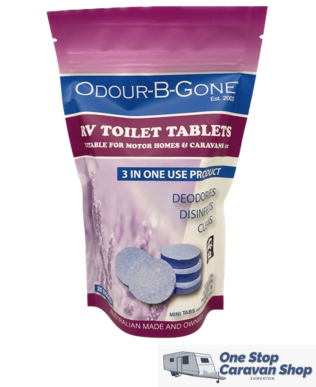 Low stock (6 units)Regular price $12.95 AUDUnit price /UnavailableOdour-B-Gone RV Toilet Tablets 50 Tablets with 10 Mini Oxygen Tablets