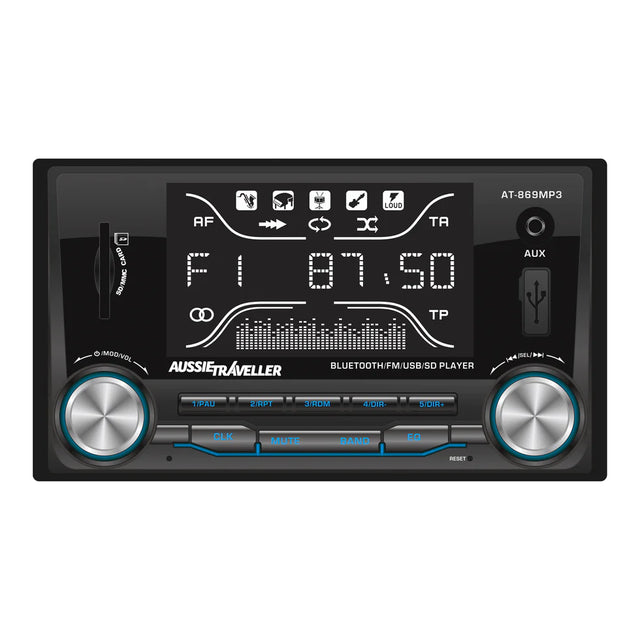 Add music to the entertainment list on your next trip away with the Aussie Traveller Audio Head Units. Featuring a LCD screen, AM/FM radio, as well as Bluetooth, AUX and USB connectivity. This double DIN model measures at 100mm in height giving additional space for a larger LCD screen.