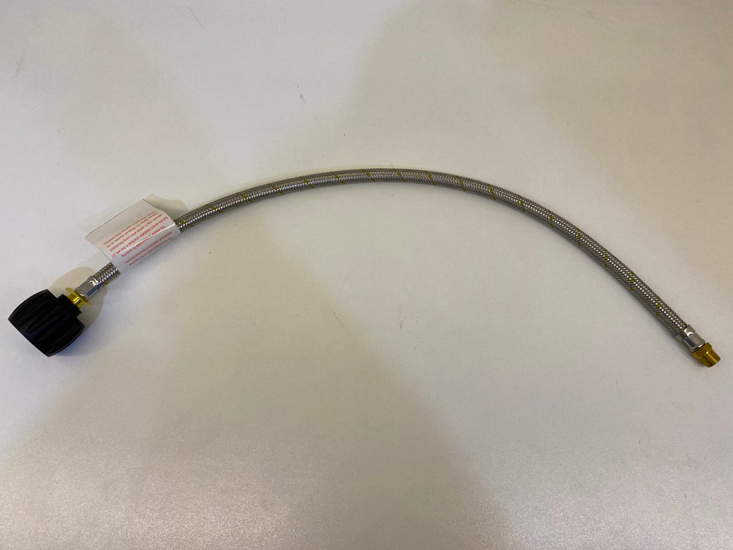 Brand new 1/4 MNPT Pigtail F LCC27 Gas Hose. Max working pressure rating 2600 Kpa. Hose Diameter is 8mm. AGA approval number 8258. 1/4 MNPT Pigtails are suited for single gas bottles.