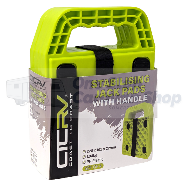 Each pad comes with a convenient handle, allowing for quick placement and removal without getting your hands dirty. Whether you're setting up camp on gravel, grass, or sand, these jack pads give you the confidence that your caravan will stay firmly in place. They distribute the weight of your RV evenly, preventing sinking or shifting and protecting the ground underneath. Enhance your setup experience and focus more on enjoying your trip with this essential stabilising solution. Plus, with their retail packaging, they're also a great gift idea for any caravanning enthusiast.