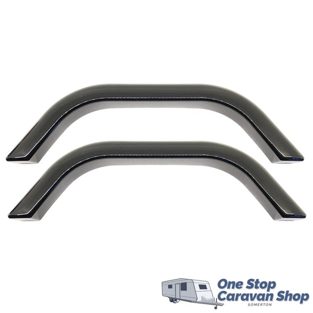 Brand new pair of black plastic wheel spats. Approximately 73cm long, approximate measurements are shown in the second image of this listing. Please note these measurements are only approximates and may not be exact. This listing is for a pair of wheel spats.