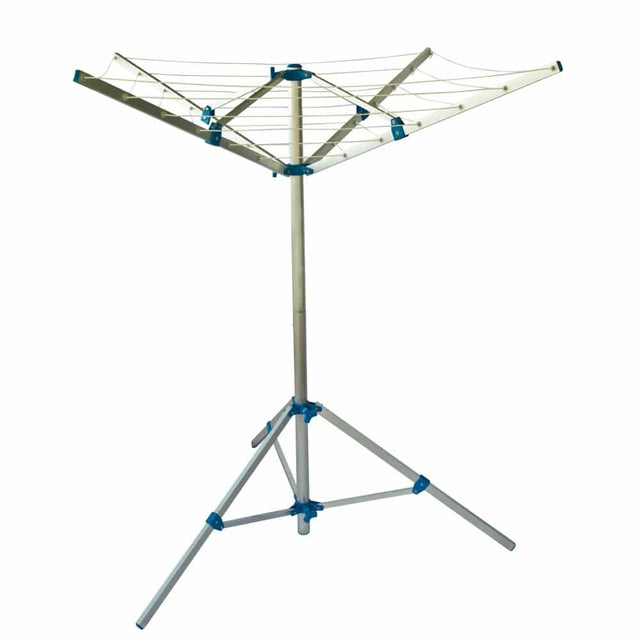 The Umbrella Style Folding Clothes Line is a Collapsible multi-purpose clothes airer, with tri-leg innovation. Great clothes hanging solution for drying clothes whilst travelling, especially if you're unsure if you will be permitted to hang lines between trees at your campsite. Unfold out of carry bag and fasten to the ground to have the ultimate drying solution!